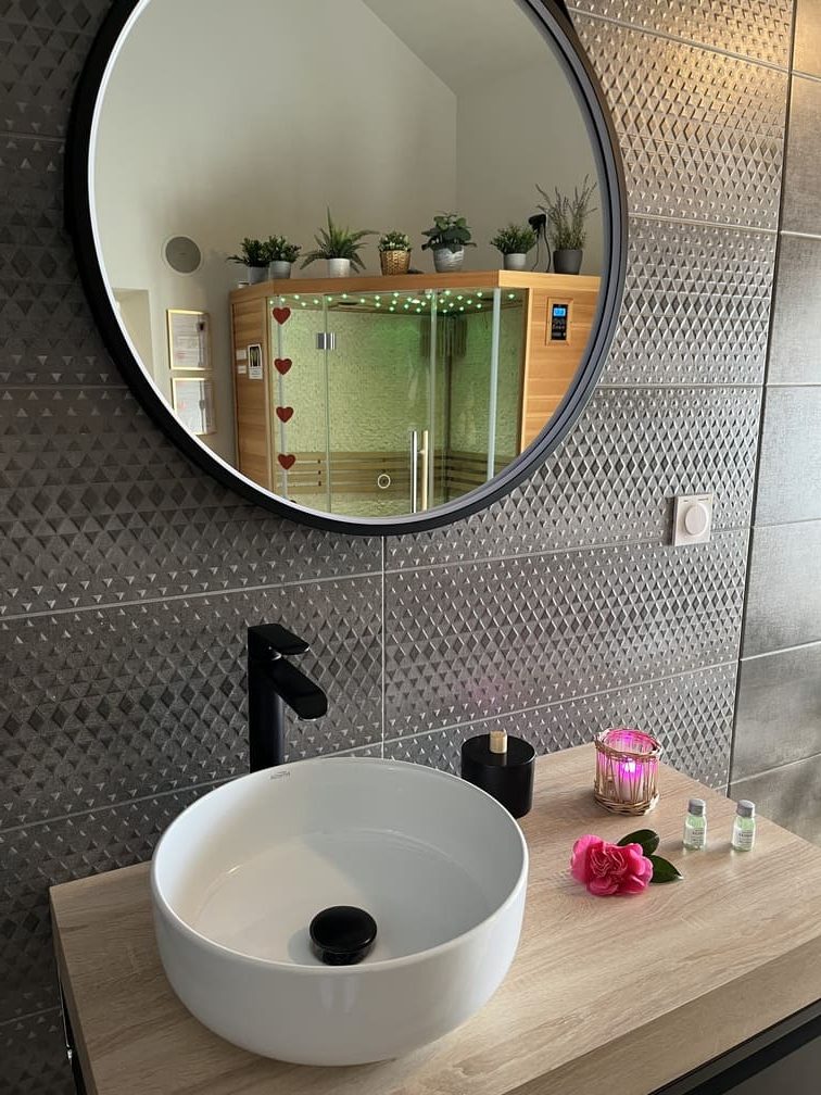 Votre Jacuzzi Privatif haut de gamme équipé de 48 jets n’attend que vous et juste à côté, un magnifique sauna scandinave traditionnel… Profitez d’une tisane en admirant le ciel étoilé au son de votre musique préférée.